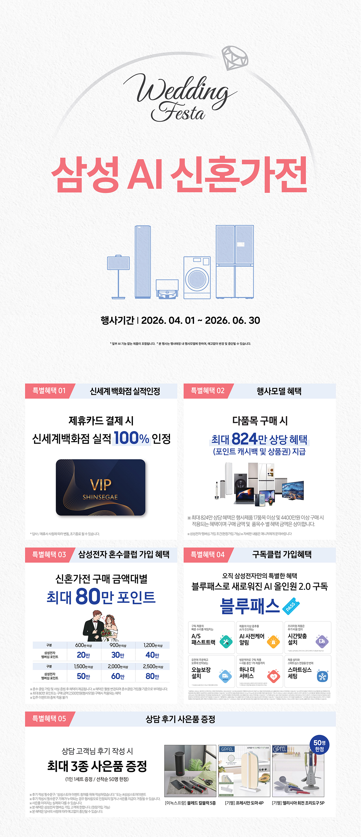 3) 신혼 가전 구매 금액대 별 최대 80만 포인트